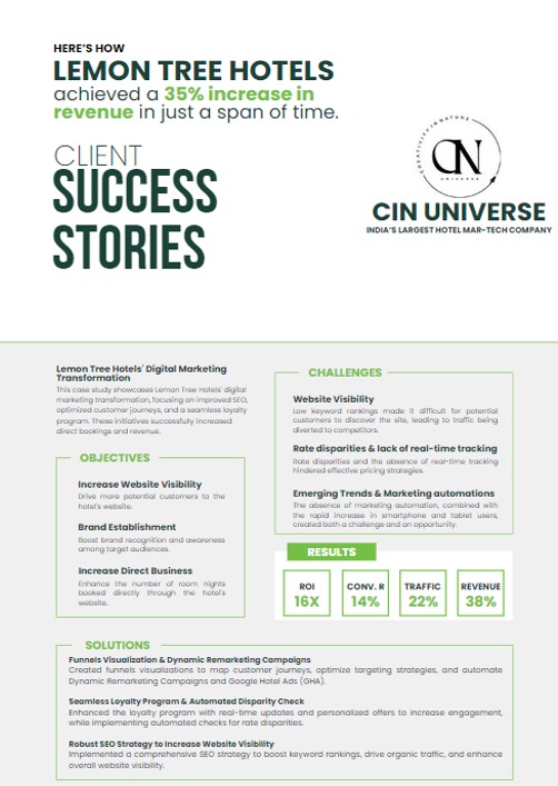 CIN Universe brings unparalleled expertise in SEO, website development, and digital strategy. With a proven track record of elevating brands in competitive industries, CIN Universe is well-equipped to drive Lemon Tree Hotels’ digital transformation.